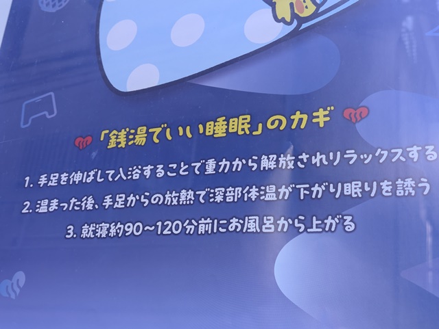 そんなことを考えながら今日散歩をしていたら、近所の銭湯の掲示板で、あるポスターを見つけて思わず足を止めちゃいました。そこに書いてあった「睡眠の質が良くなる」っていう内容が、今の私にピッタリで!